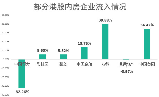 内房板块方面出现一些分化,部分融资成本比较低,经营相对稳健的品种流入较多,另外大湾区的区域龙头也有不错的流入,之前比较热的恒壁融今年流入较少。