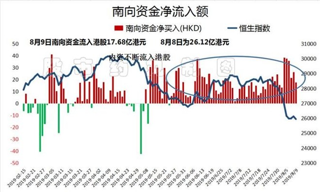 虽然我们的机构仓位最近一直在下降,但是南下抄底港股的资金今年以来却一直在持续流入。