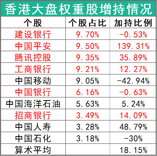 香港大盘里,整体都呈现增持状况,尤其是前五核心权重有三家都增持,且幅度不小。