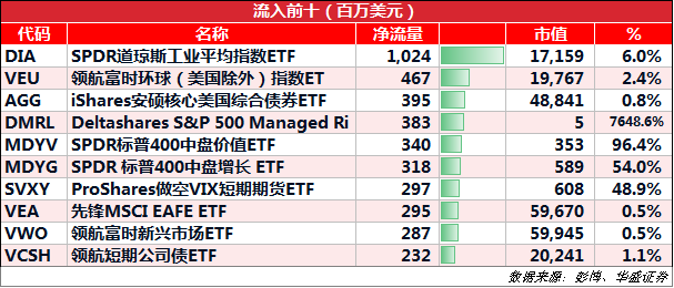 一周净流入前十: