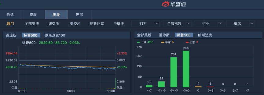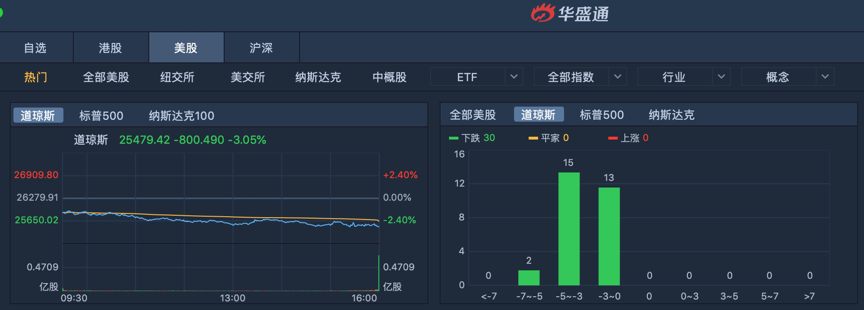 周三,美债收益率倒挂及亚欧经济数据疲软加重市场对衰退的担忧,美股周三全线暴跌。截至收盘,道指暴跌800点,录得2019年迄今对最大单日下跌点数,跌幅3.05%,报25479.42点;标普500指数跌2.93%,报2840.60点;纳指跌3.02%,报7773.94点。