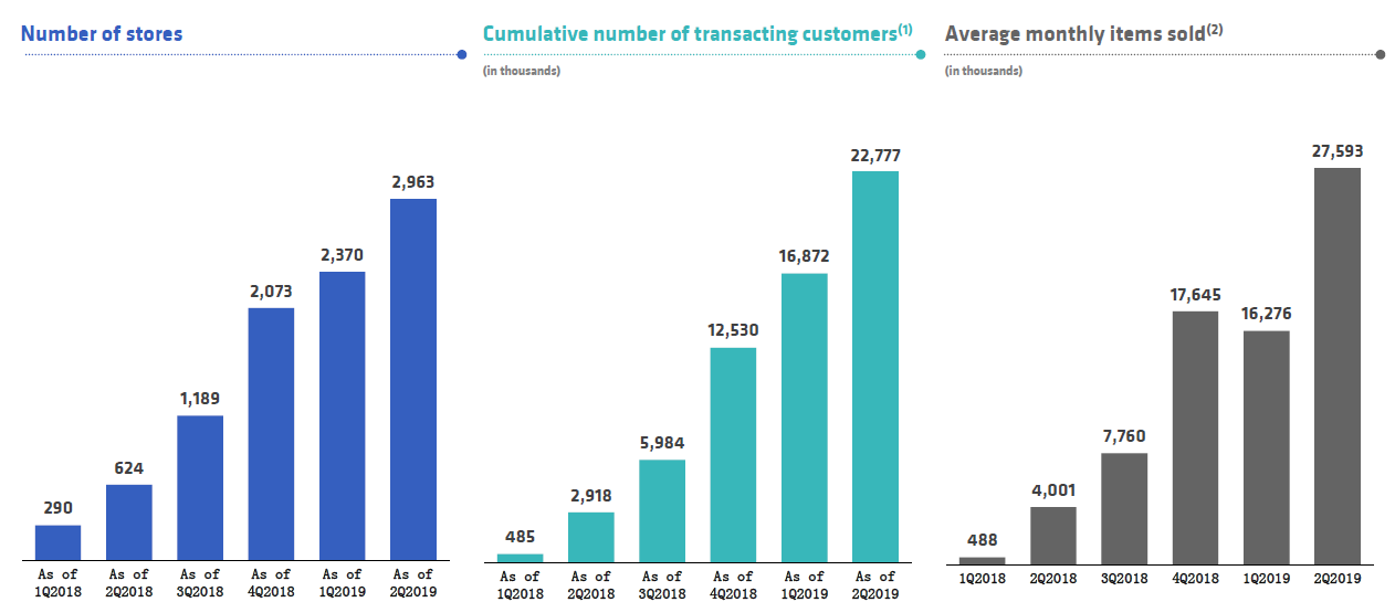 随着门店、产品及运营投入的加大,季度用户新增590万(18年Q1开始季度分别新增50万、240万、310万、650万、430万),平均每月客户数量为620万,比上年同期的120万增长410.6%;交易客户累计数量2280万,与上年同期的290万高了几乎一个数量级;产品销售方面,平均每月销售商品为2760万件,比上年同期的400万件增长589.7%。