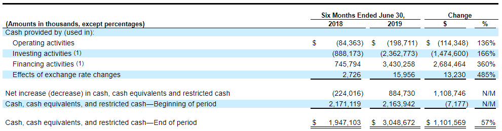 租赁物业的长期固定成本,可能对资金的流动性产生负面影响。目前公司还处在扩张阶段,主要通过对外融资来支撑业务的发展,2019年上半年,经营性和投资性现金流均为负值,融资现金流高达34亿美元,截至6月30日,WeWork账上还有30亿美元现金。