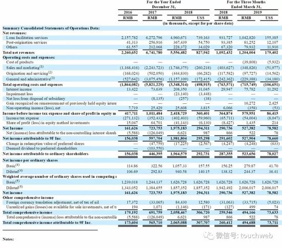 玖富2019年第一季度的净利润为5.27亿元(约7858万美元),上年同期为2.9亿元;玖富2016年、2017年、2018年净利润分别为1.61亿元、7.23亿元、19.75亿元(约2.94亿美元)。