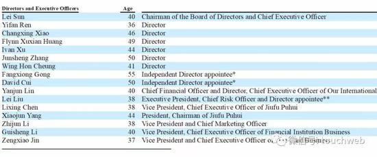 玖富创始人、集团首席执行官为孙雷,孙雷曾供职于专注小微金融领军银行的中国民生银行总行,以金融科技著称的上市公司高阳科技。