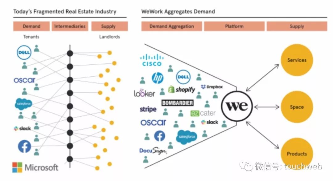 通过这种灵活的租赁方式,WeWork吸引了不少愿意以低成本租赁办公空间的中小型企业。在中国,也有类似优客工场、氪空间这些办公软件企业。