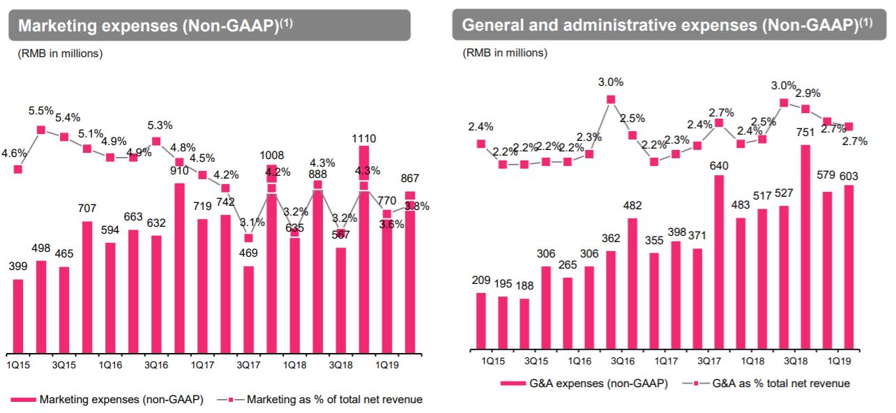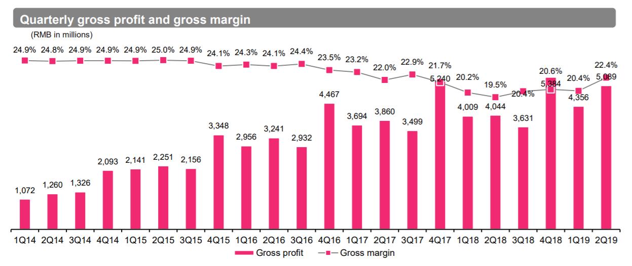 竞争在推高获客成本,为了生存,2019年初唯品会决定专注现有用户的盈利。目前看来,公司很好地执行了这一战略,无论是在营收增长还是利润率方面,Q2已实现了很好的业绩,可圈可点。