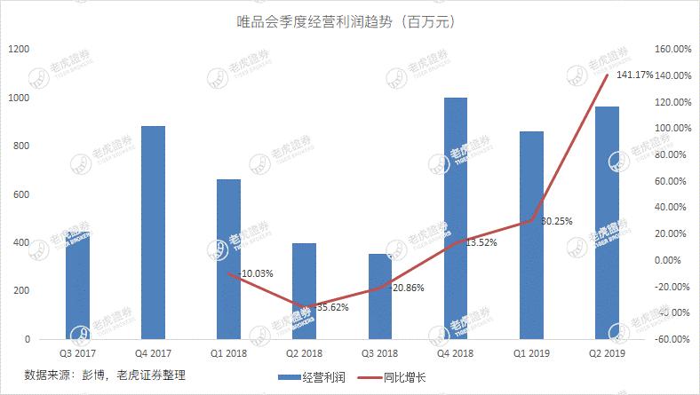 Q2最大亮点或为利润起飞。唯品会Q2经营利润为人民币9.654亿元,同比增141.2%。