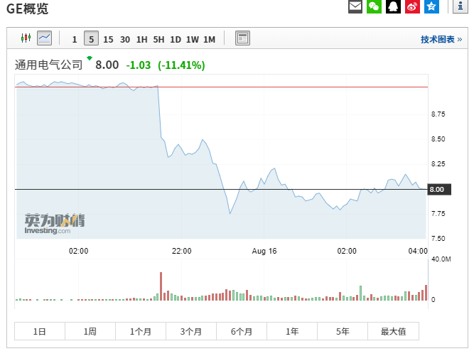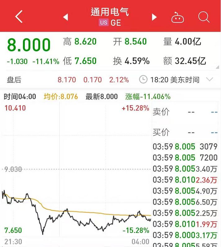 美国时间本周四(15日),通用电气股价开盘便暴跌,盘中跌幅一度扩大到14.85%。
