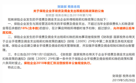 另外一部分的额外利润来源来源于所得税税改。由于今年5月份提高了保险公司佣金的所得税税前扣除比例。简单说,保险公司过去支付保险营销员的佣金占比是非常高的,但无法全部税前扣除,导致实际的所得税税率高于25%,现在提高扣除标准后,所得税费用下降,导致利润提升。