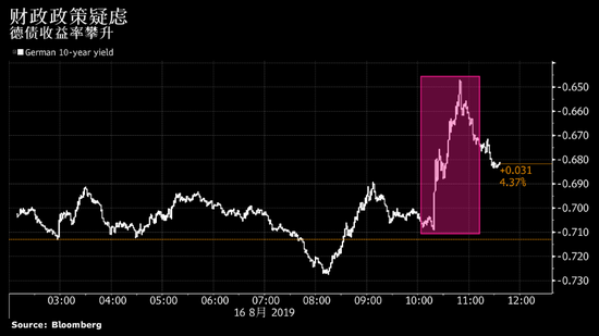 10年期国债收益率从历史新低水平攀升,此前有消息称,德国总理默克尔和财政部长舒尔茨愿意增加债务以抵消经济下滑期间的收入不足。
