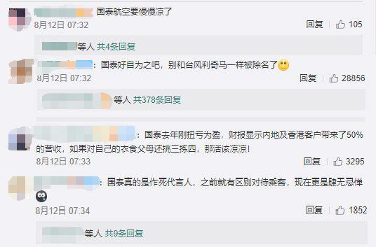 官方“亮剑”后,国泰航空才在9日紧急撇清,表示部分员工行为“不代表公司立场”,并重申一贯支持“一国两制”。然而,国泰航空的声明广大网友并不买账。