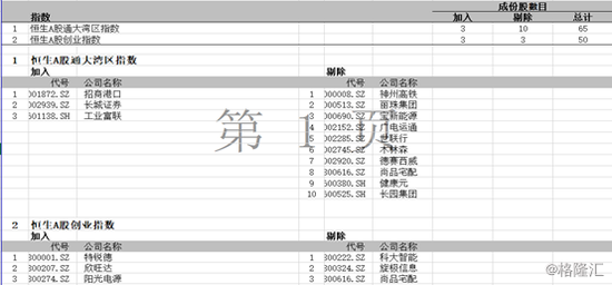 在这些指数中,恒生沪深港通大湾区质量成长指数的变动最多,此次在新加入19只个股的基础上,同时剔除了19只个股。