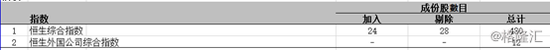 在这些指数中,成份股变动最多的是恒生港股通中小型指数,该指数此次新加入了24只个股,并剔除了28只个股。