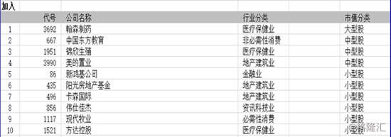 新加入的24只个股,包括1只大型股、3只中型股以及20只小型股。其中的大型股为翰森制药(03692.HK),中型股为中国东方教育(00667.HK)、锦欣生殖(01951.HK)、美的置业(03990.HK),小型股则包括新鸿基公司(00086.HK)、阳光房地产基金(00435.HK)、现代牧业(01117.HK)等。