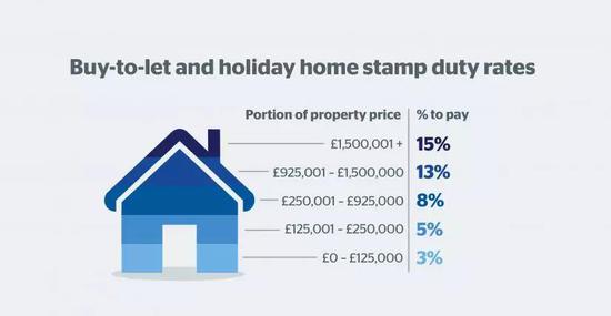 2016年4月起,英国正式执行针对第二套房产或投资出租房产(Buy-to-Let)征收额外3%印花税政策。