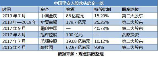 截止目前,中国平安已经成为碧桂园、融创中国、旭辉控股、华夏幸福以及中国金茂的股东,除此之外还和多家标杆房企合作成立房地产公司,展开拿地、收购项目等方面的合作。