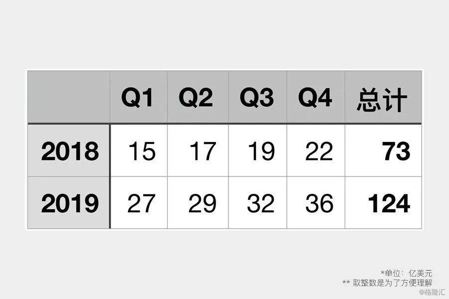微软的 Azure 在 2018 财年是 70 多亿美元年收入,2019 财年是 120 多亿美元。