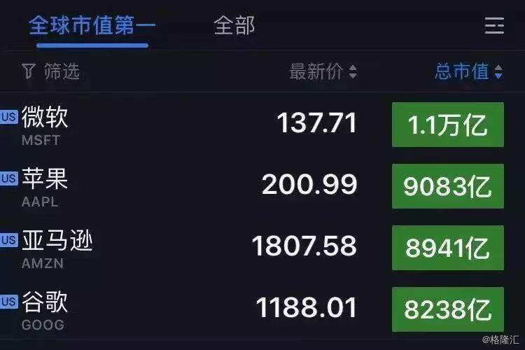 2019-08-09 收盘,图片来自公众号 今天 Microsoft 市值全球第一了吗