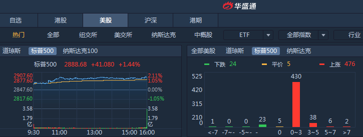 上周五,美股三大股指齐涨,市场憧憬美联储及各国央行推出经济刺激政策,道指收涨1.2%报25886.01点;纳指涨1.67%报7895.99点;标普500涨超1%报2888.68点。
