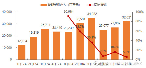 (a) 智能手机:2Q19收入同比增长5.0%至RMB320.2亿,环比增长18.6%,占总收入的比例为61.6%,主要受益于智能手机ASP增长;