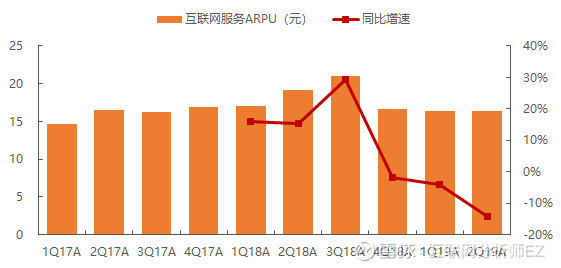 图:小米互联网服务ARPU及同比增速(1Q17A-2Q19A)