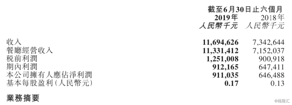报告期内,海底捞实现营业利润9.12亿元,同比增40.89%;公司股东应占利润9.11亿元,同比增40.92%。