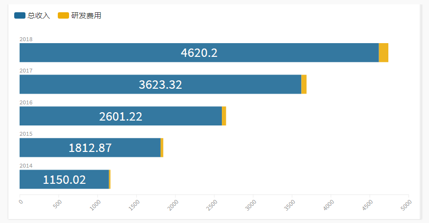 2018年收入59.1亿/研发投入18.38亿/研发占比31.11% /排名1# (单位:人民币)