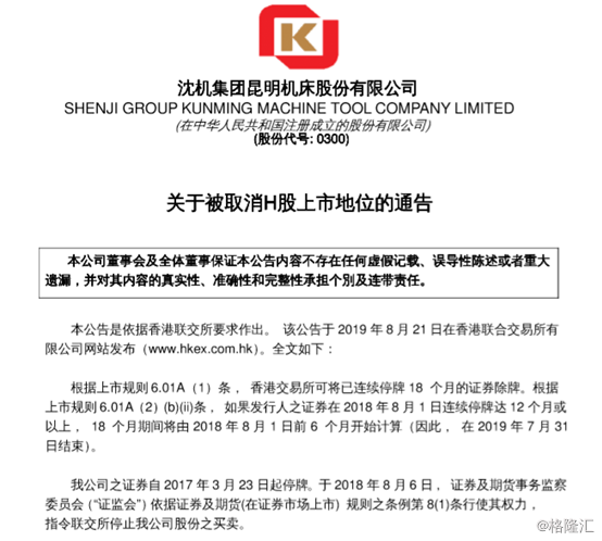 值得注意的是,其在A股的“退市昆机(600806.SH)”早已于2018年7月11日结束了最后一个交易日,并于7月13日被上交所摘牌。至此,云南省唯一一家同时在A+H股上市的公司,从辉煌走向了没落。