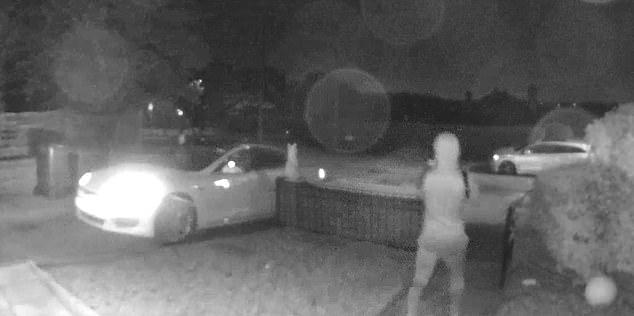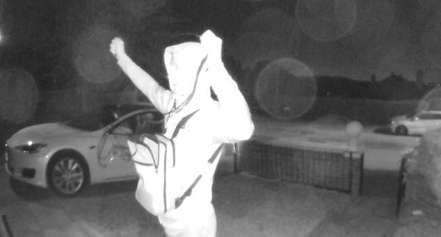在简短的视频中,可以看到其中一名窃贼穿过花园大门向房子走去。这名戴着兜帽的男子脖子上戴着一个电子背包。他手里拿着一根铁丝,把它们举过头顶,朝房子走了最后一步。与此同时,汽车的前灯闪烁了,表示现在已经解锁。