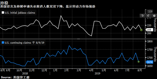 申请人数的下降预示着8月非农就业报告将表现良好,因本期数据包括劳工部对非农报告做调查的报告周。首次申请失业救济人数仍处在历史低位附近,显示劳动力市场紧俏,可能有助于缓解经济衰退的担忧。