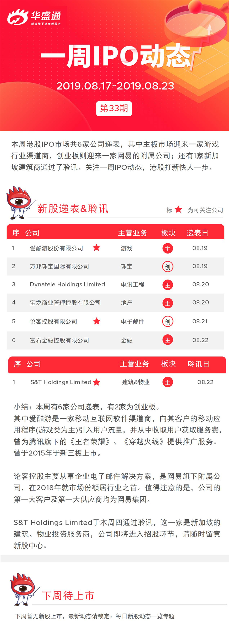 一周IPO动态 | 新股市场又逢甘露 新加坡建筑商通过聆讯