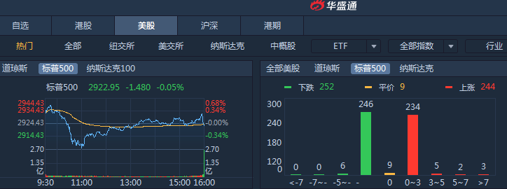 周四美股全线高开,市场对于经济衰退的担忧令三大股指集体转跌,投资者关注杰克森霍尔会议,收盘道指涨0.19%报26252.24点,纳指跌0.36%报7991.39点,标普500指数跌0.05%报2922.95点。