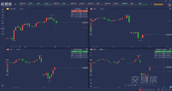 周五,美联储主席鲍威尔在杰克逊霍尔年会上发表讲话称,我们将采取合适的行动以维持经济扩张。国际黄金5分钟内波动近5美元,美股三大指数短线上扬。