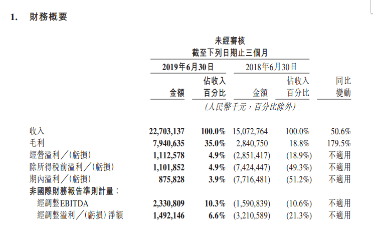 新京报讯(记者 欧阳晓娟)8月23日,美团点评(简称美团)发布2019年第二季度及上半年业绩报,第二季度营收227亿元,同比增长50.6%,经调整EBITDA(扣除利息、税项、折旧及摊销前的盈利)达23亿元,经调整净利润15亿元,首次实现整体盈利。同时,上半年,公司实现营收418.8亿元,同比增58.9%,经调整净利润4.53亿元。