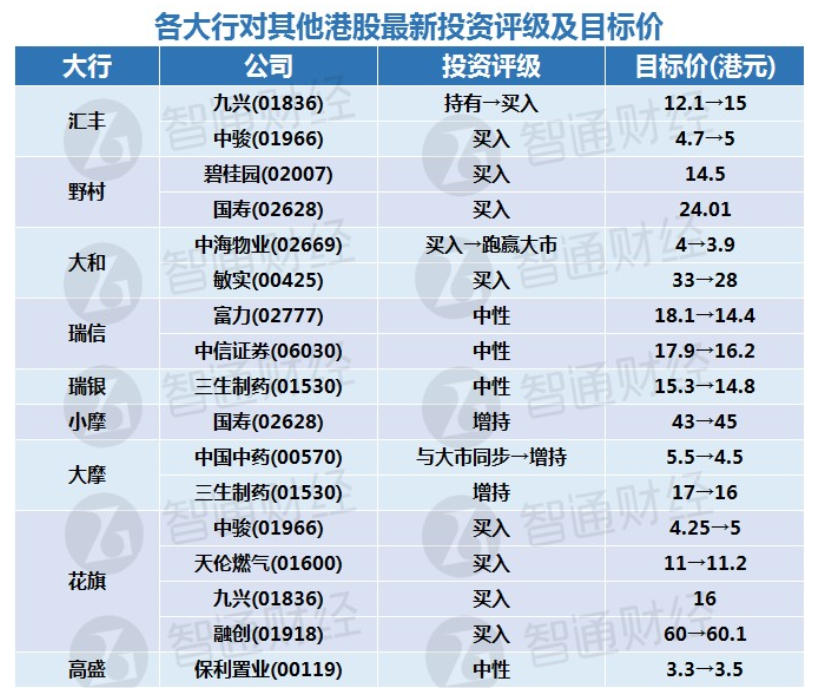 三、大行评级