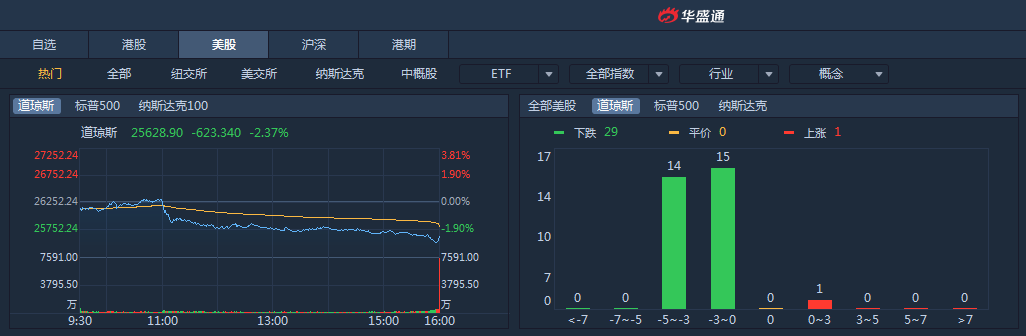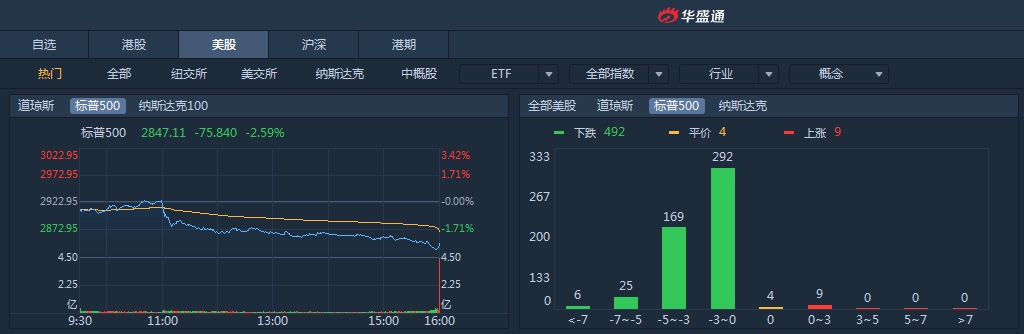 上周五,美股收盘全线暴跌,道指跌超600点。截至收盘,道指跌2.37%,报25628.90点,跌幅为;标普500跌2.59%,报2847.11点;纳指跌3%,报7751.77点。