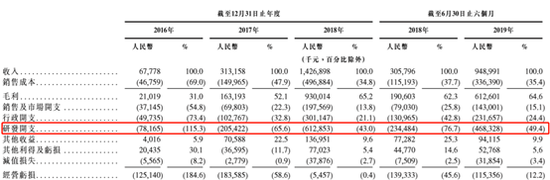 看员工人数的构成也说明公司是纯粹的科技公司,除了核心管理团队的成员都是清华系的班底,目前公司的员工中,研发人员依然是绝对的主力,占比高达61%,于2019H1,研发人员中约95.3%具备学士或以上学位,其中约37.7%具备硕士或以上学位。