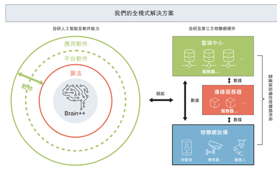公司的商业模式是:1)以自主研发采用AutoML技术的Brain++深度学习框架为创新核心,构建出一条不断自我改进、不断变得更加自动化的半自动的算法开发生产线;2)基于Brain++开发丰富的人工智能算法组合,专为不同垂直领域的应用量身定制;3)打造创新性的平台软件,平台能够利用人工智能算法、连接硬件及支持应用,类似于Windows或者安卓这样的操作系统;4)基于客户的各种需求,开发多种功能的应用软件产品。