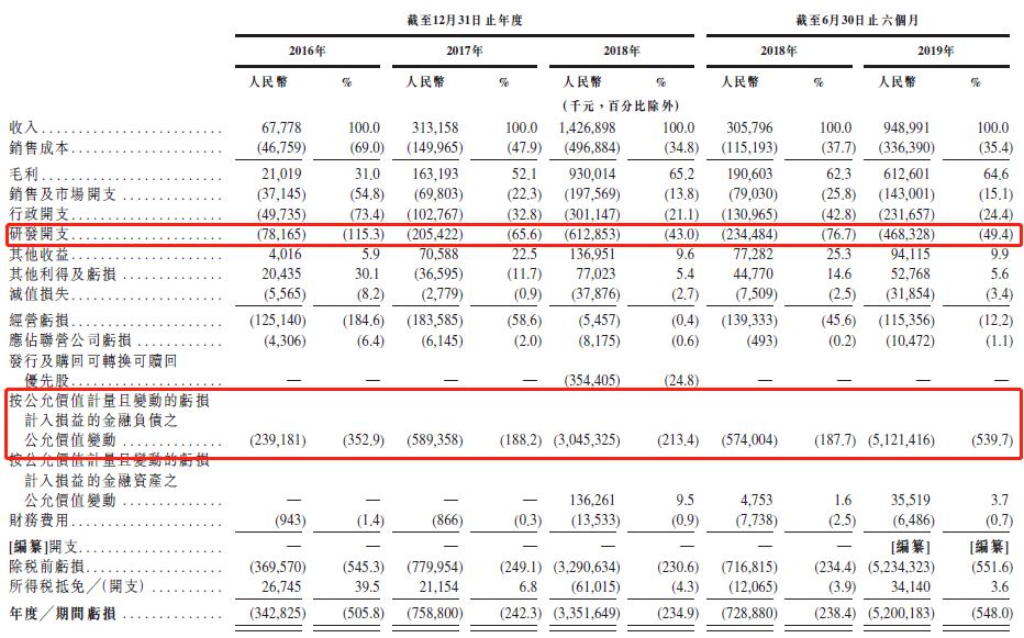 招股书提到,亏损主要是由于优先股的公允价值变动及持续的研发投资,实际反映公司正常经营的经调整后净利润情况为:三年分别净亏损9200万元、净亏损1.424亿元、获得净利润3220万元(首度扭亏),2019年上半年获得净利润3268万元。