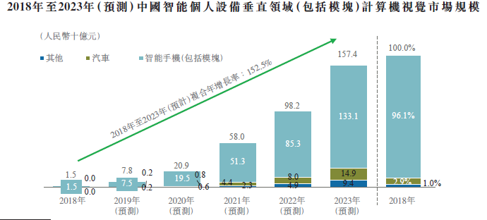 第二大业务为个人物联网业务,受益于手机、汽车及线上认证的人脸识别需求的渗透及升级,预计以上期间市场规模将高速成长,规模从人民币15亿元增至1574亿元,复合年增长率高达152%。