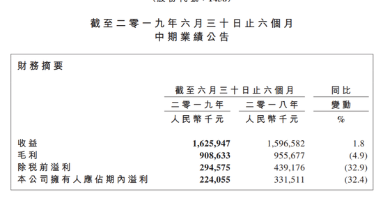 新浪港股讯 8月27日消息,周黑鸭(01458.HK)上半年收益为16.26亿元,去年同期为15.97亿。上半年净利润为2.24亿元,去年同期为3.32亿,大幅下滑32.4%。上半年本集团新开设84间自营门店,同时因经营效益不佳、市政改造等原因调整关闭117间自营门店。截至二零一九年六月三十日,本集团的自营门店总数为1255间,覆盖中国17个省份及直辖市内96个城市。