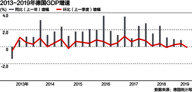 然而,进入2018年,情况发生了突变。德国的季度GDP增速从第三季度开始逐渐下降,而今年第二季度GDP环比萎缩0.1%,更被不少经济学家视为“黄金十年”的终结。