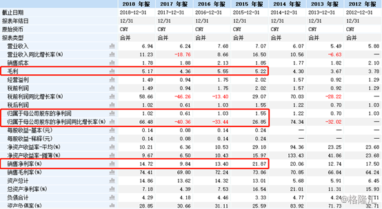然而需要警惕的是,实际上在2015年上市之后,公司的业绩表现并不乐观,2016、2017年连续两年出现净利润下滑,且下滑幅度逐步增大的情况,毛利和净利率也在连年下降。