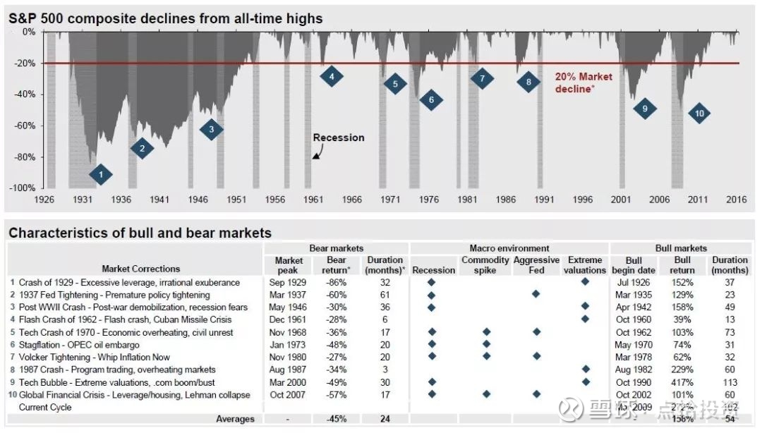 导读:最近美股的波动率大幅提高,许多人开始担心美股是否会见顶回落进入熊市。橡树资本的霍华德.马克斯认为美股已经进入“八局下半了”。今天我们和大家分享一下美股历史上的十次大熊市,以及是什么触发了这些熊市。或许会帮助我们理解,如果真的来一次熊市,会来自哪些基本面的原因