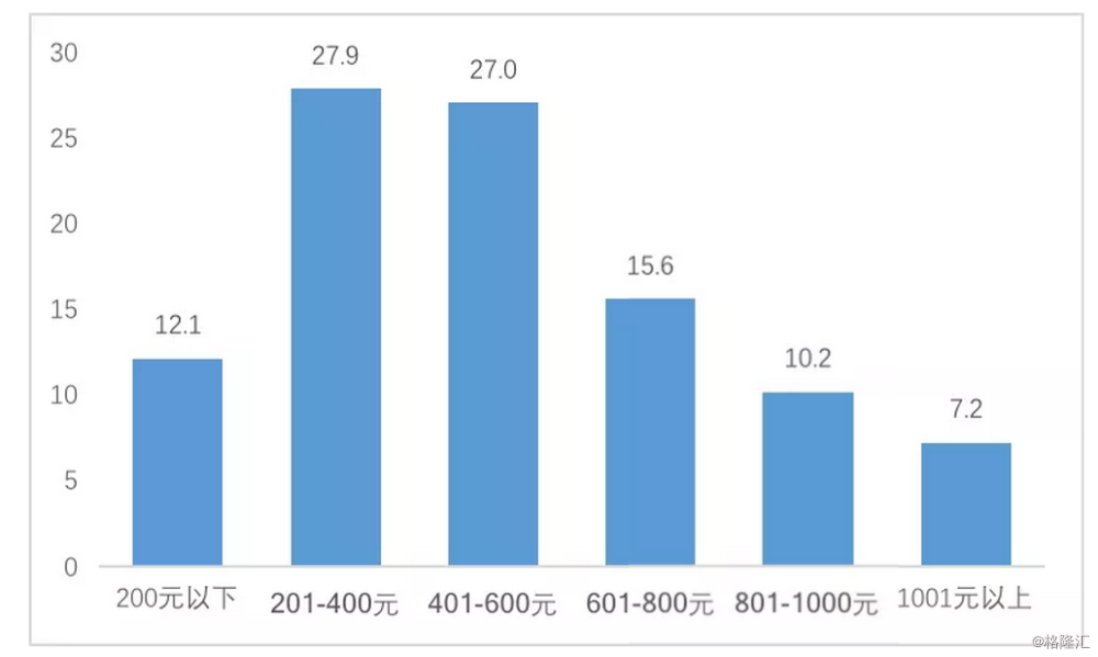 在这个基础上,“夜经济”不仅成为城市消费的“新蓝海”,也更为购物中心的发展带来诸多机会。据《夜间旅游市场数据报告2019》显示,当前夜游花费在200-400元和400-600元之间的比重最高,分别为27.9%和27%,600-800元和200元以下居中,分别占比15.6%和12.1%,1000元以上比重最低。