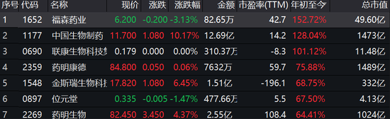 新浪港股讯 8月29日消息,吃药避险股大幅走高,其中,中国生物制药大涨10.36%,翰森制药涨7.36%,金斯瑞生物科技涨6.45%,信达生物涨5.93%,药明生物、绿叶制药、石药集团等涨逾4%。今年以来涨幅来看,福森药业暴涨152%,中国生物制药涨129%,联康生物涨101%,药明康德涨78%。
