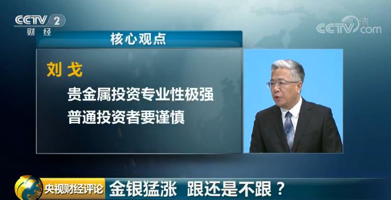 央视财经评论员 刘戈:虽然市场有些火热,但贵金属投资的专业性非常强,黄金和白银市场风险因素较多,对普通投资者来说,一定要非常谨慎。