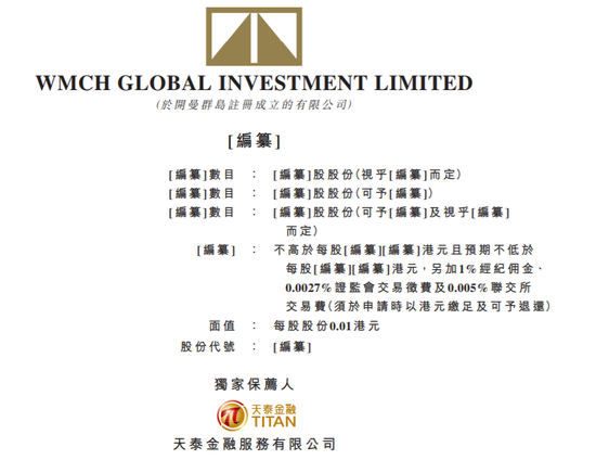 新浪港股讯 8月30日消息,新加坡土木及结构工程咨询服务公司WMCH Global INVESTMENT LIMITED向港交所递交上市前文件,天泰金融独家保荐。