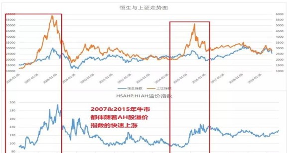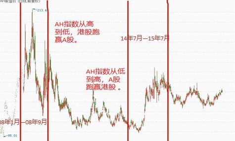 恒生AH溢价指数就是用来计算这些在A股和H股同时上市公司的价格差异。当一段时间内,A股公司相对于H股涨幅过快的时候或H股相对于A股下跌过快时,AH溢价指数就会迅速的上涨。